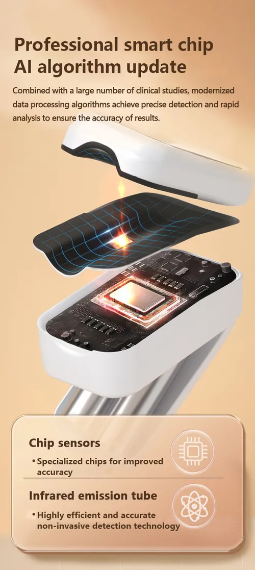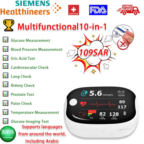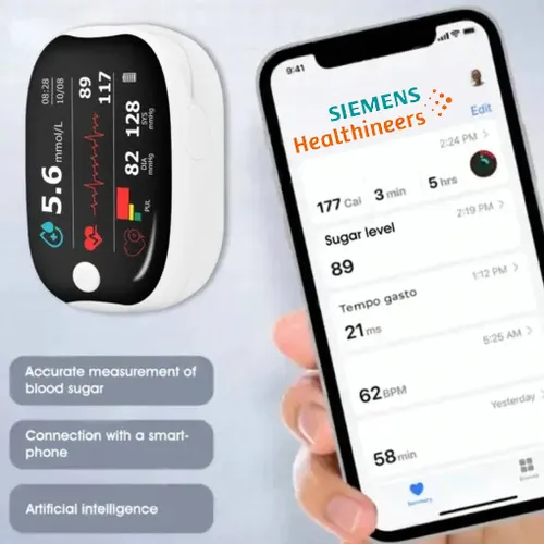 Siemens' latest innovation is a smart, multifunctional, non-invasive laser glucometer that integrates cutting-edge technology for superior health monitoring. The device uses an ultra-low power MCU intelligent control chip and adopts the advanced "LAMBERT BEER" algorithm to ensure highly accurate measurements. It combines photonic chip technology and silicon with light absorption spectroscopy to provide reliable and non-invasive monitoring of blood glucose, blood pressure and blood oxygen levels. This FDA-approved device includes ten display functions for easy and comprehensive health tracking. Whether you are managing diabetes, monitoring cardiovascular health or tracking oxygen levels, Siemens offers a reliable, all-in-one solution for your health needs.