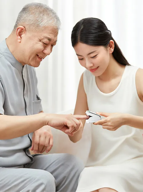 Check blood sugar and oxygen levels daily to monitor the health status of middle-aged adults and the elderly.
